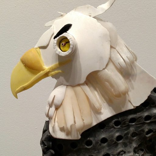 Healing through acts of environmental stewardship. Removing an environmental threat (plastic) and reincarnating the material in the form of thing that is threatened. Note the Bald Eagle made from plastic tampon applicators and other junk plastic.